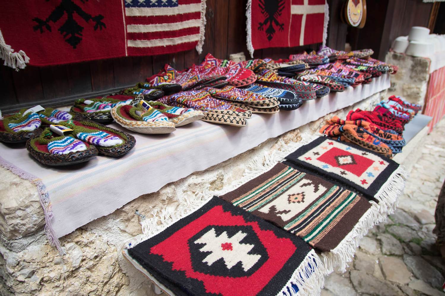 Der schönste Ort ist der Basar von Kruja, bestehend aus Holzbuden in besonderer Bauweise, einzigartig in der Region. Dutzende Souvenirverkäufer haben sich hier niedergelassen. Sie verkaufen neben albanischer Kleinkunst traditionell hergestellte Handwerksgegenstände. Hier können Sie Souvenirs, handgefertigte Teppiche, Schmuck, traditionelle Kleidung, altes Werkzeug und Vieles mehr finden.